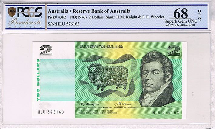 Australia, QEII, Two Dollars, Knight/Wheeler, 1976, PCGS Superb Gem UNC 68 OPQ
