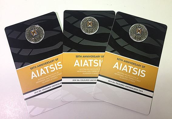 Uncirculated Fifty Cents, 2014 AIATSIS coloured issue, very sort after issue with high catalogue value (3 coins)