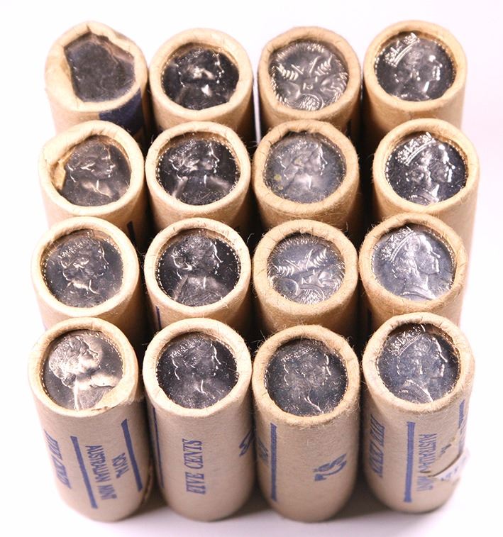 Australia, QEII, Uncirculated Five Cent Mint Rolls, 1981-87