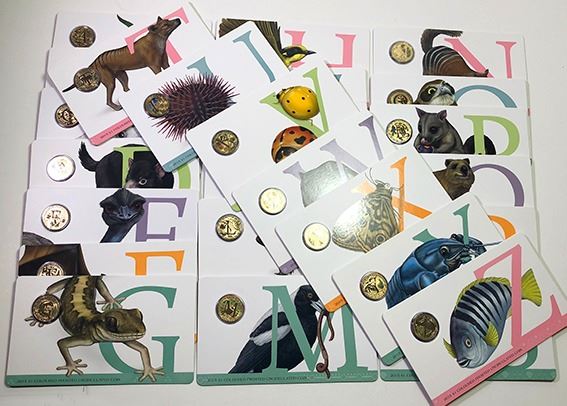 Uncirculated One Dollar, 2015, Alphabet series, A-Z complete, all on original card packaging as issued (26 coins)