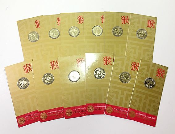 R.A.M, Uncirculated One Dollar, 2016, Lunar Series, Year of the Monkey, in original card packaging, without red envelopes (12 coins)