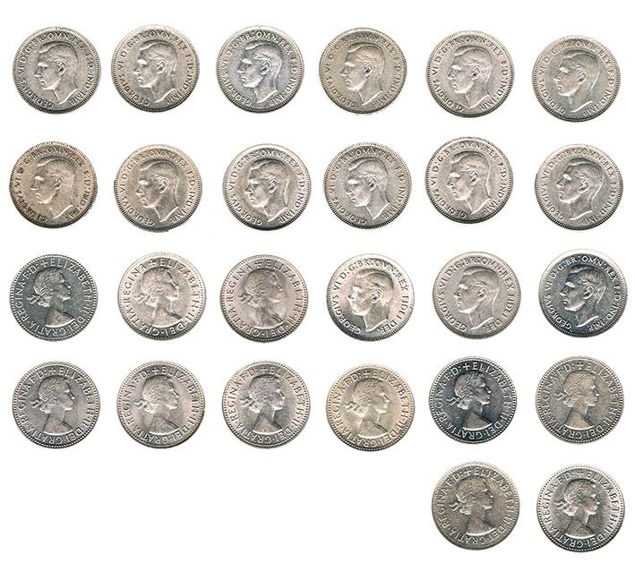 Complete set for George VI and Elizabeth II. Includes all mintmark issues. Better than average condition, most coins with mint bloom, very fine - uncirculated (26 coins)