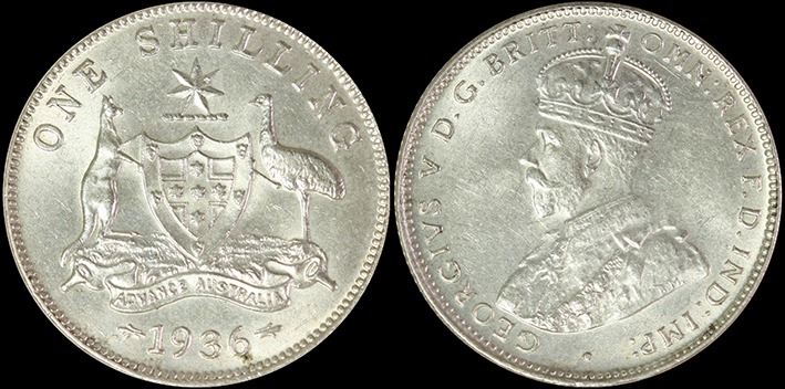Australia, Shilling, George V, 1936