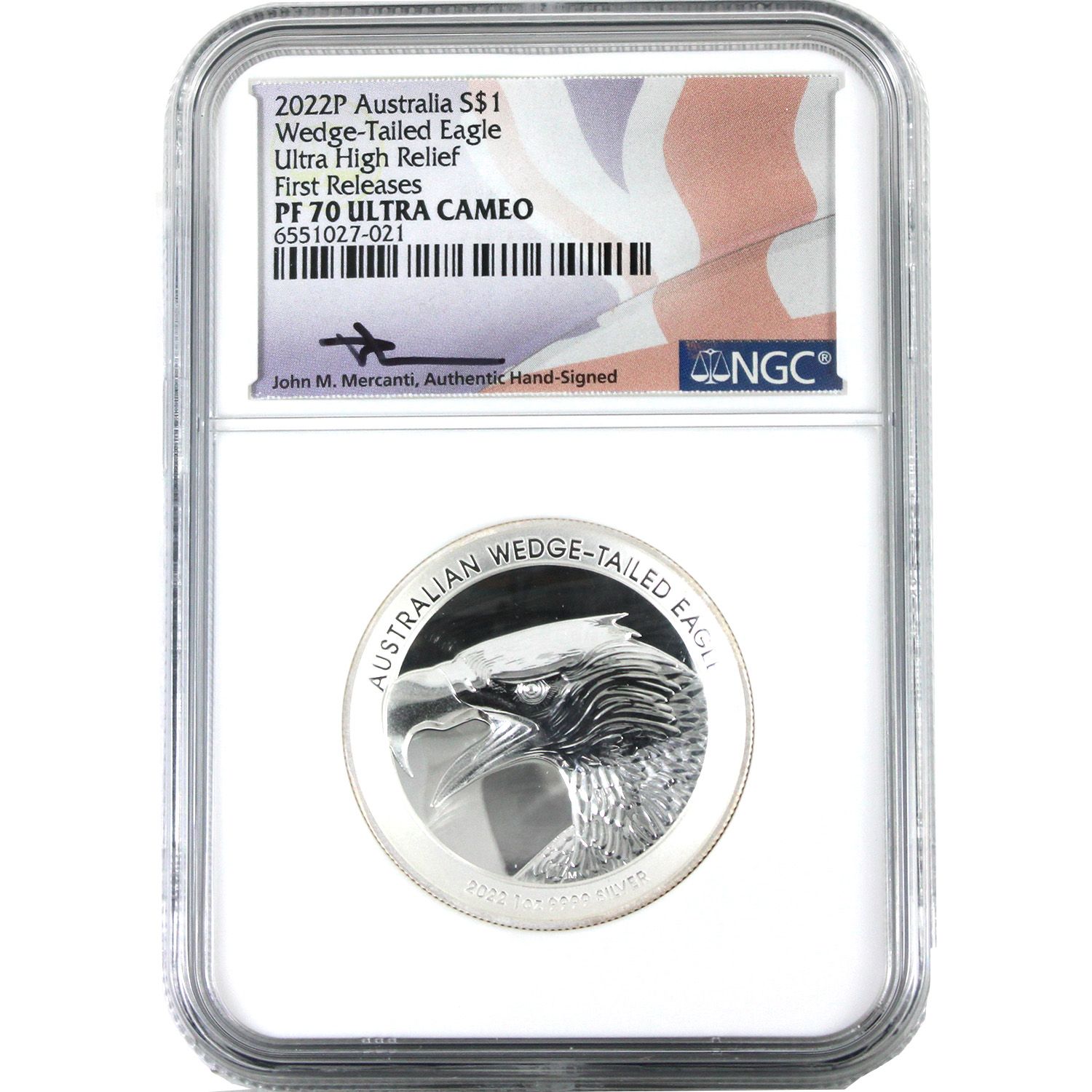 NGC John M. Mercanti, Authentic Hand Signed. 1oz .9999 Silver. 2614/5000. Lightly toned (Tax Exempt)