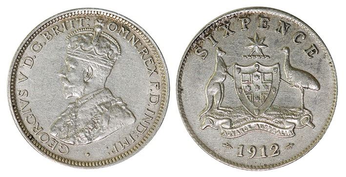 Australia, Sixpence, George V, 1912