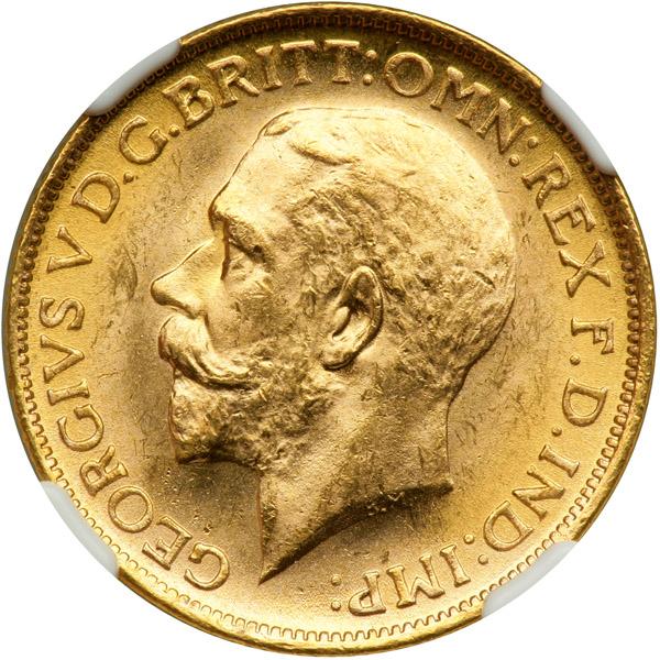 Australia. Sovereign, 1912-S. Fr-38; KM-29. Weight 0.2355 ounce. George V. NGC graded MS-64.