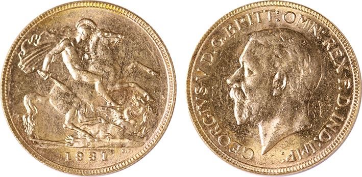 George V Sovereign 1931 Perth, graded as almost Uncirculated
