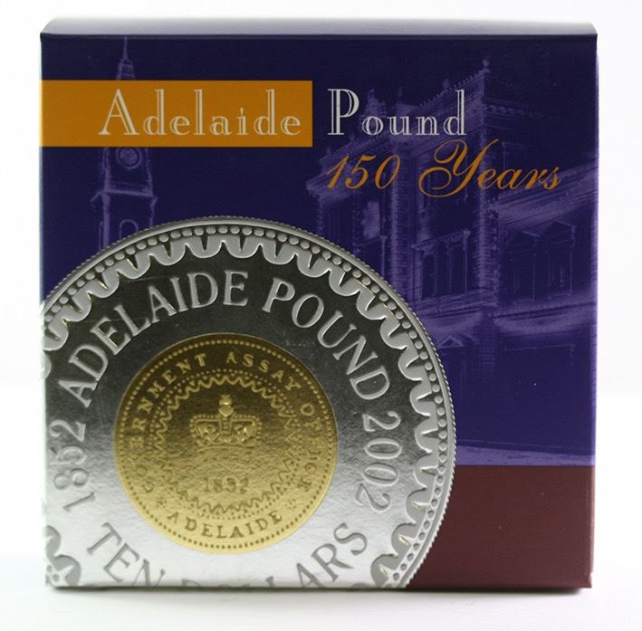 Proof Ten Dollars, 1852 Adelaide Pound, gold plated, 1.945 oz silver, in case as issued by RAM with certificate