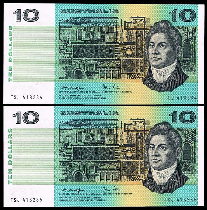 Australia, Ten Dollars, Knight/Stone (1979) TSJ 418284/85 (R.307a)