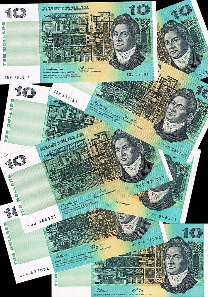 Knight/Wheeler side thread (1976) (R.306b); Knight/Stone Gothic serials (1979) (R.307a), Knight/Stone OCR-B serials (1979) (R.307b); Johnstone/Stone (1983) (R.308); Johnston/Fraser (1985) (R.309); Fraser/Higgins (1990) (R.312); Fraser/Cole with P.I.L. (1991) (R.313a); Fraser/Cole no P.I.L. (1991) (R.313b). All Uncirculated (8 notes)