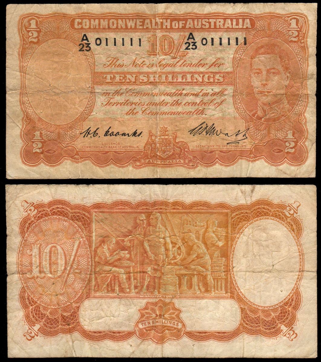 Australia, Ten Shillings, Coombs/Watt (1949) A/23 011111 (R.14)