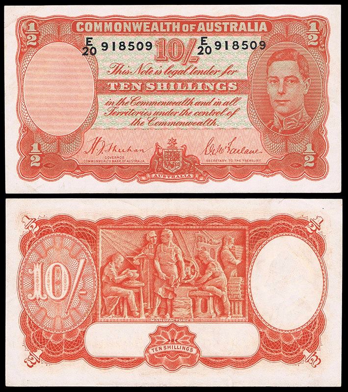 Australia, Ten Shillings, Sheehan/Macfarlane (1939) E/20 918509 (R.12)