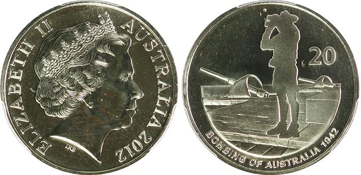 Australia, Twenty Cents, 2012 Bombing - Lookout PCGS MS68