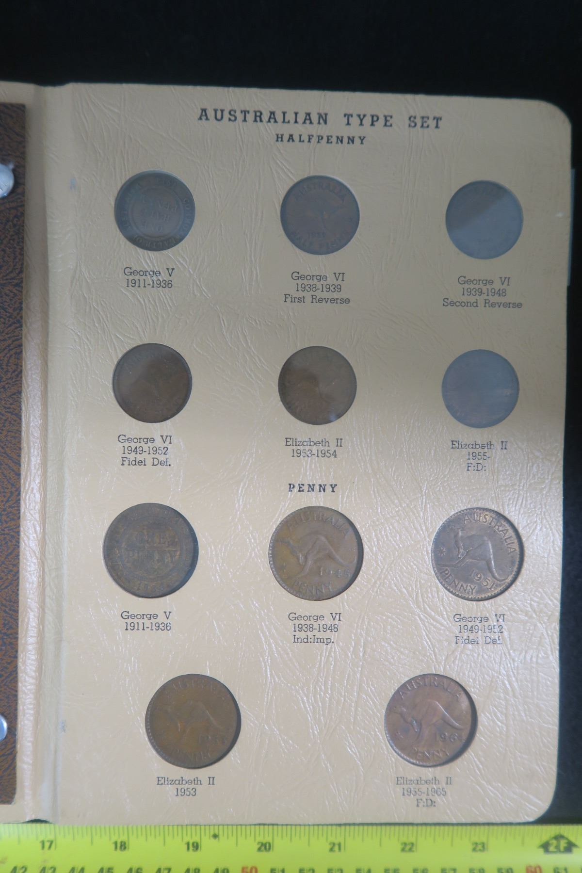 Australia Type Set Collection. 42 coins, includes half pennies, pennies, silver 3 pence, silver 6 pe