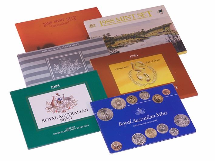 Uncirculated sets, 1984, 1985, 1986, 1987, 1988, 1989 (6 sets)