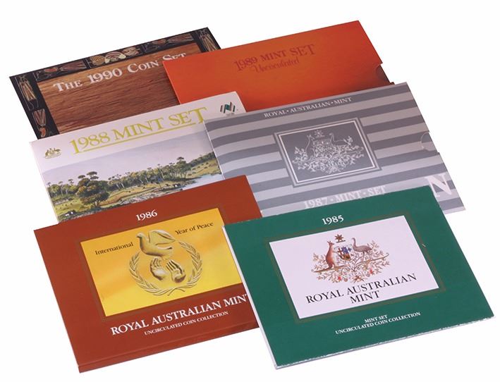 Uncirculated sets, 1985, 1986, 1987, 1988, 1989, 1990 (6 sets)