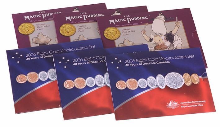 Uncirculated Baby Sets, 2007 (3); together with Uncirculated Set, 2006 (3) (6 sets)