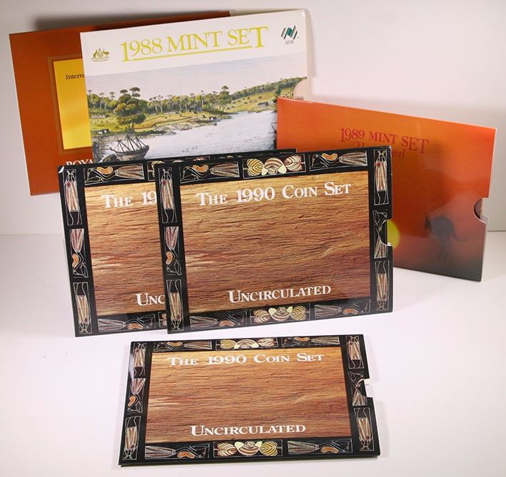 Uncirculated sets, 196, 1988, 1989, 1990 (3) (6 sets)