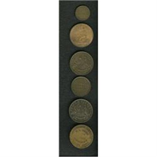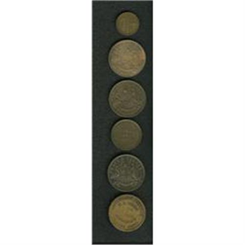<B>Australian 19th Century Merchant Token Group Lot.</B></I> Consists of six merchant tokens: KM Tn-275, KM Tn-285.1 (two pieces), KM Tn-83.2, KM Tn-285.2, and a one-shilling token issued by the Tasmanian Travelers Association. A great starter collection of Australian tokens with a catalog value about $250-$350.<BR><BR><b>Shipping:</b> Coin/Currency (<a target="_blank" href="http://www.heritageauctions.com/common/shipping.php">view shipping information</a>)
