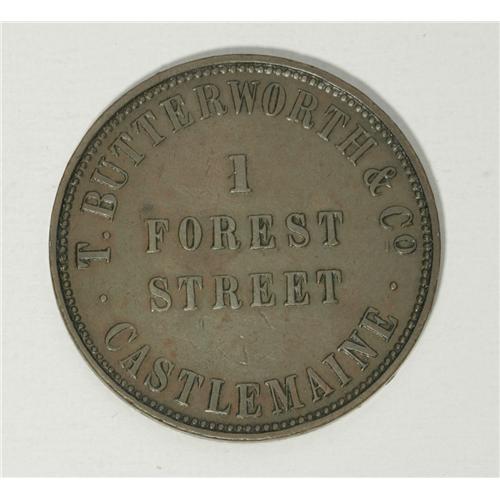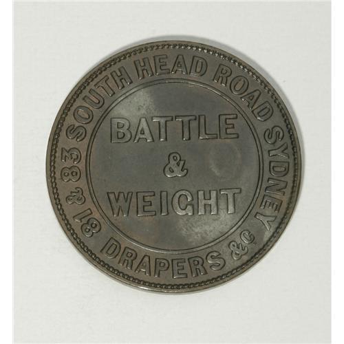 <B>Australian 19th Century Merchant Token Group Lot.</B></I> Consists of two penny tokens: one from Battle & Weight, Sydney, N.S.W., KM Tn-21, Extra Fine; and one issued in 1859 by T. Butterworth & Co. Castlemain, Victoria, catalog number KM Tn-28, Fine. The catalog value in Krause is approximately $225-$300.<BR><BR><b>Shipping:</b> Coin/Currency (<a target="_blank" href="http://www.heritageauctions.com/common/shipping.php">view shipping information</a>)