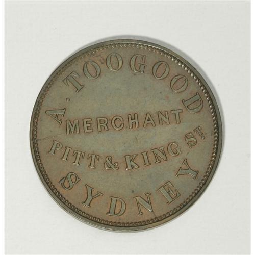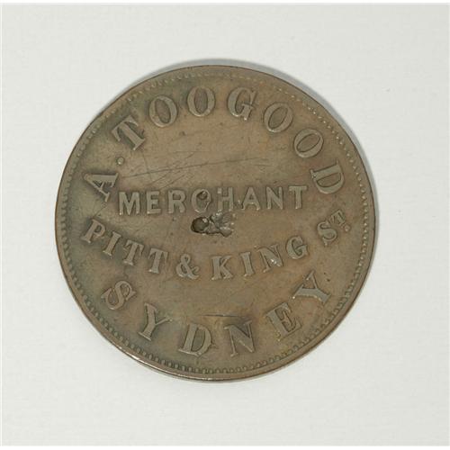 <B>Australian 19th Century Merchant Token Group Lot.</B></I> Includes three one penny tokens issued by the following merchants: A. Toogood Merchant, Sydney, NSW, KM Tn-256, XF; Thomas White & Son, Westbury, Tasmania, KM Tn-270, Fine+; and another A. Toogood, KM Tn-256, VG. The current catalog value ranges from $175-$250.<BR><BR><b>Shipping:</b> Coin/Currency (<a target="_blank" href="http://www.heritageauctions.com/common/shipping.php">view shipping information</a>)