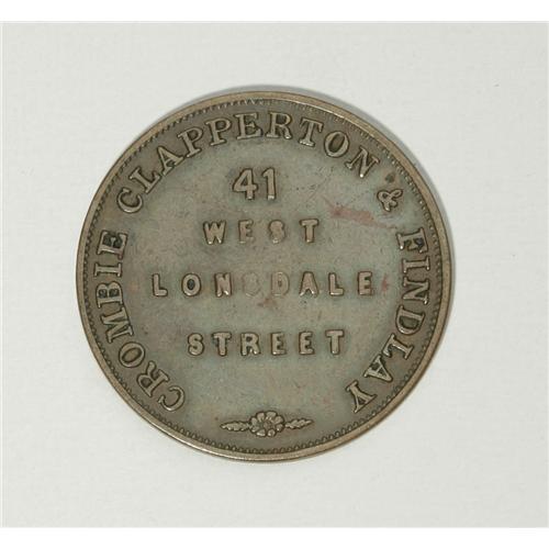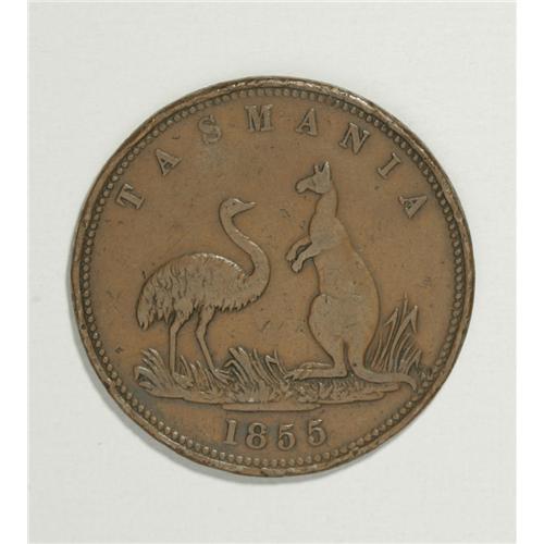 <B>Australian 19th Century Merchant Token Group Lot.</B></I> Includes a penny token issued by Lewis Abrahams of Tasmania and dated 1855, KM Tn-7; and a halfpenny issued by Crombe Clapperton & Findlay of Melbourne, KM Tn-41. The catalog value is approximately $100-$150.<BR><BR><b>Shipping:</b> Coin/Currency (<a target="_blank" href="http://www.heritageauctions.com/common/shipping.php">view shipping information</a>)