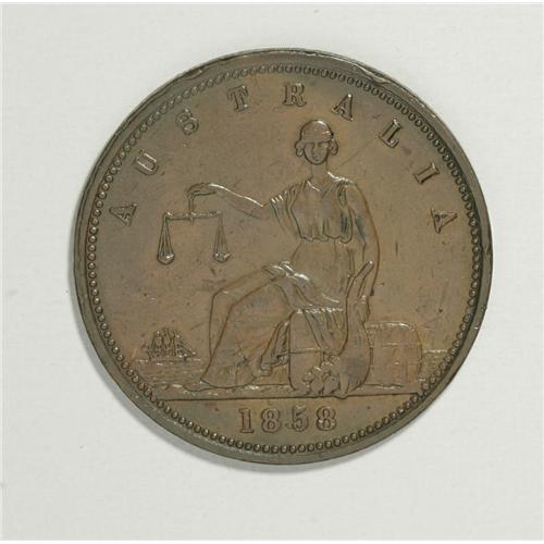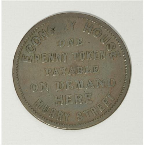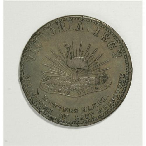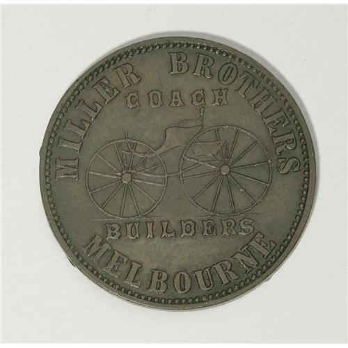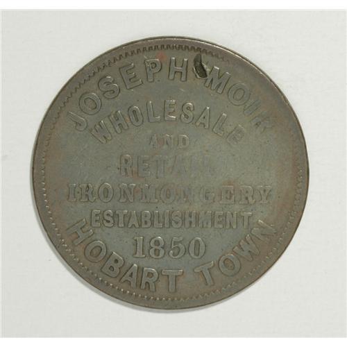 <B>Australian 19th Century Merchant Token Group Lot.</B></I> Includes three penny tokens issued by the following merchants: Miller Brothers, Coach Builders, Melbourne, Victoria, KM Tn-172; Joseph Moir, Ironmonger, Hobart Town, Tasmania, KM Tn-174; and William Morgan, Retail Grocer, Adelaide, South Australia, KM Tn-175. The current Krause catalog value is approximately $150-$200.<BR><BR><b>Shipping:</b> Coin/Currency (<a target="_blank" href="http://www.heritageauctions.com/common/shipping.php">view shipping information</a>)