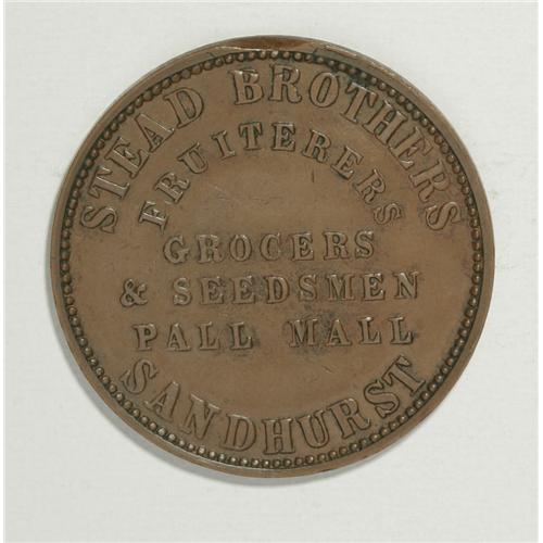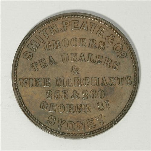 <B>Australian 19th Century Merchant Token Group Lot.</B></I> Includes two penny tokens: Smith, Peate & Co. Grocers, Sydney, NSW, KM Tn-211, Extremely Fine; and Stead Brothers, Grocers, Sandhurst, Victoria, KM Tn-213, Very Fine. The catalog value is approximately $350-$450.<BR><BR><b>Shipping:</b> Coin/Currency (<a target="_blank" href="http://www.heritageauctions.com/common/shipping.php">view shipping information</a>)
