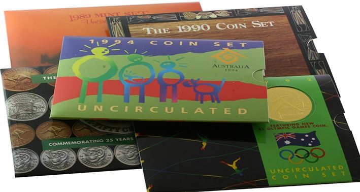 Uncirculated Sets 1989, 1990, 1991, 1992, 1994 (Narrow date) (5 sets)