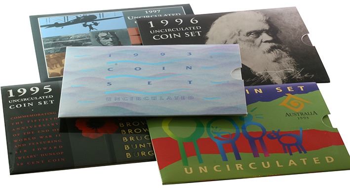 Uncirculated Sets 1993, 1994 (Wide date), 1995, 1996, 1997, (5 sets)