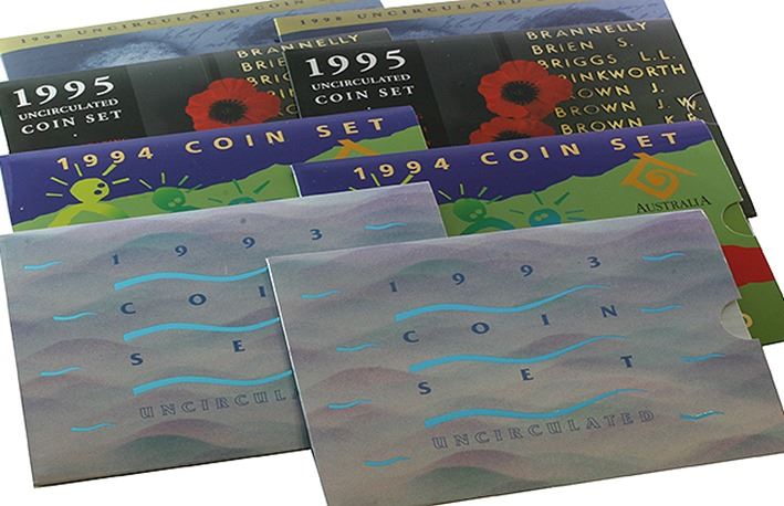 Uncirculated Sets 1993 (2), 1994 (2, both wide date), 1995 (2), 1998 (2) (8 sets)