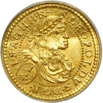 Austria. ¼ Ducat, 1683 (Breslau). Fr-288. Leopold I (the Hogmouth), 1657-1705. Laureate bust right. Reverse: Crowned eagle. Brilliant and lustrous. NGC graded MS-64.