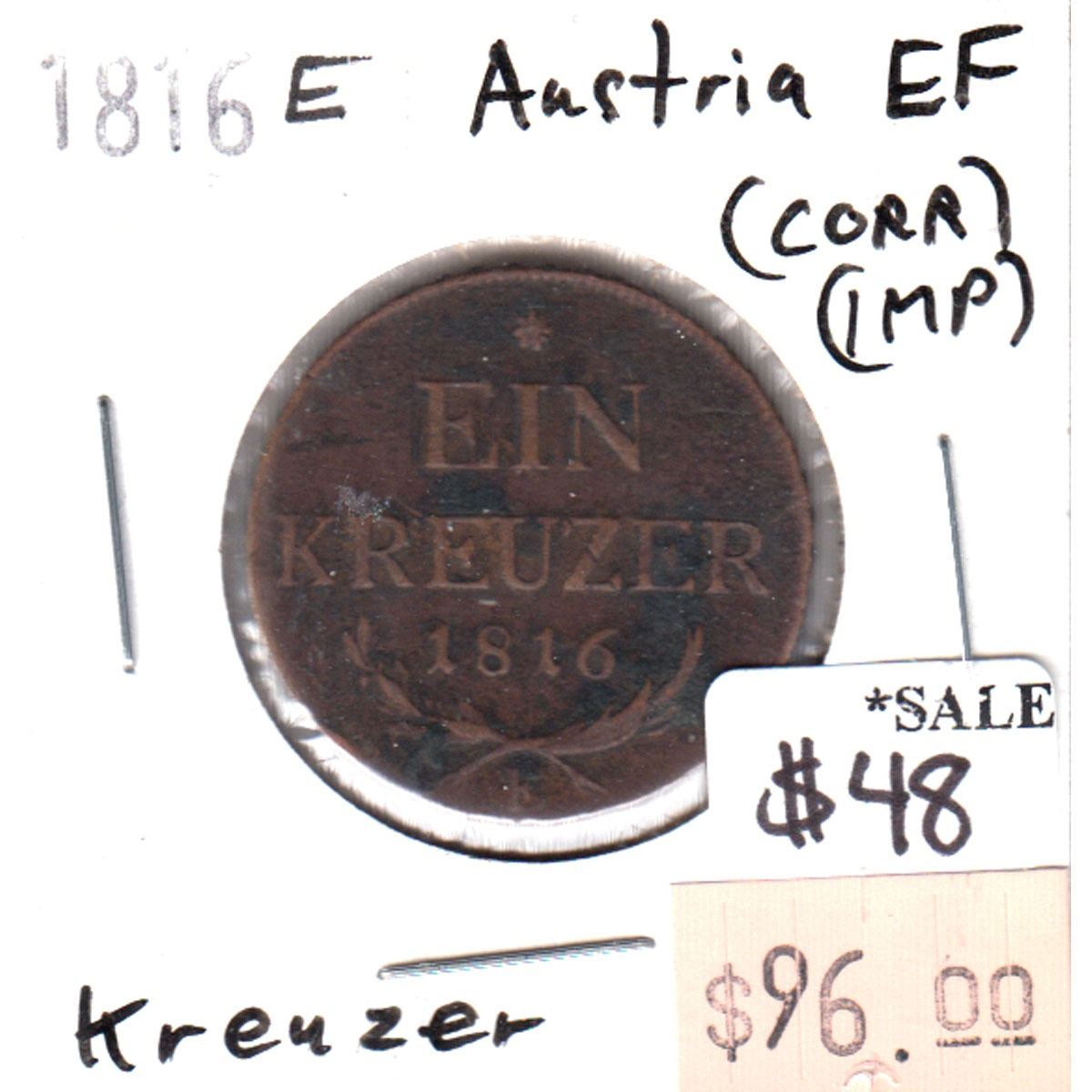 Austria 1816E Kreuzer in Extra Fine (EF-40) Condition (impaired)