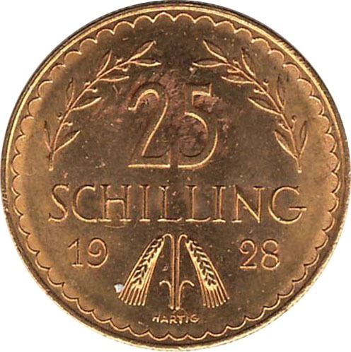 Austria 1928 Gold 25 Schilling. 0.1702 oz AGW.