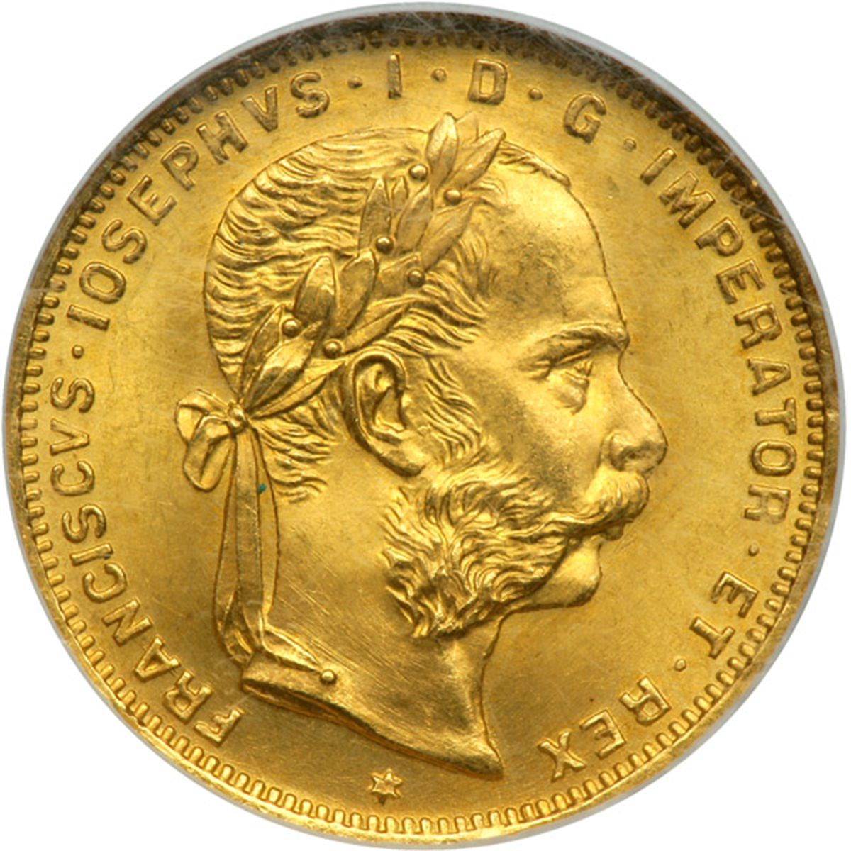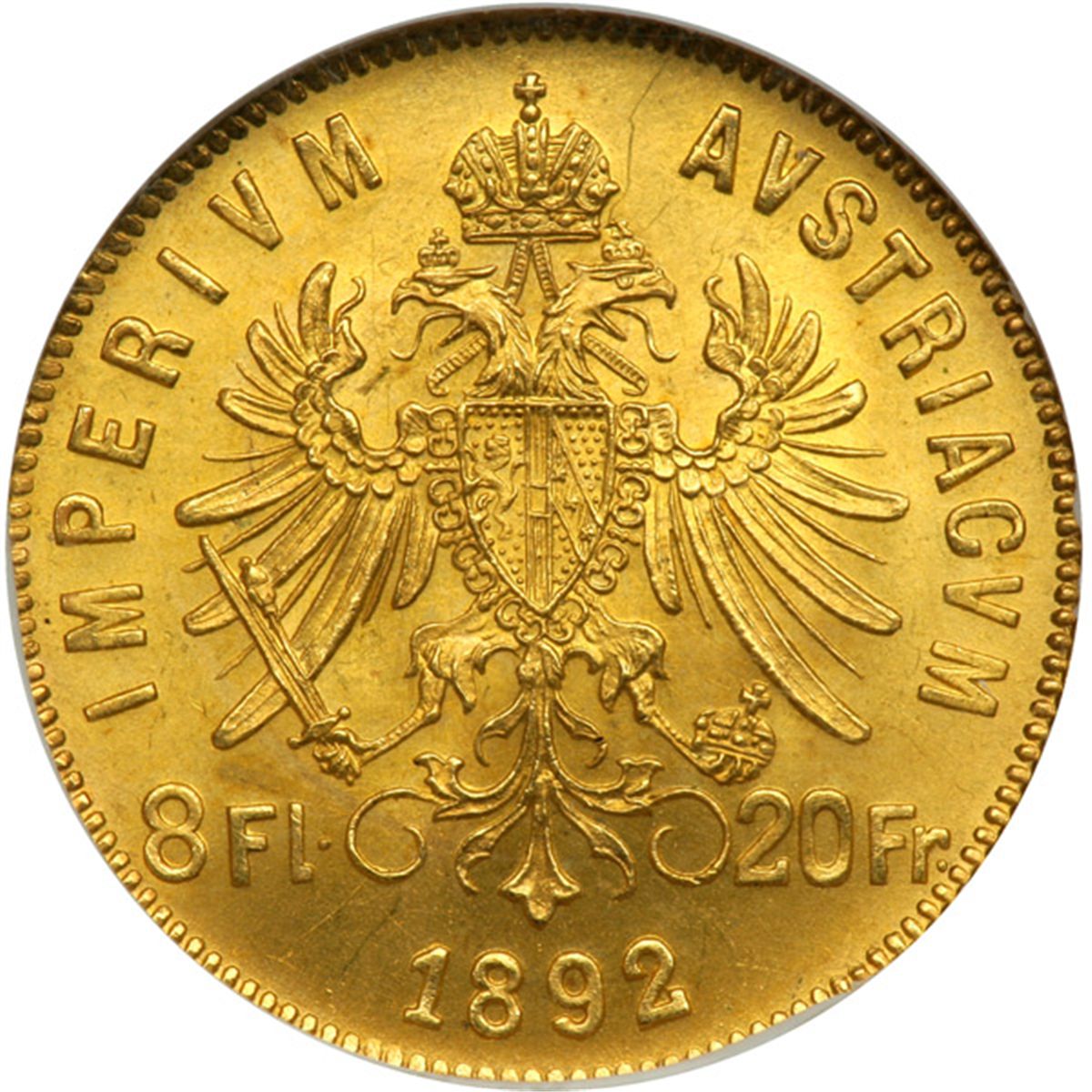 Austria. 8 Florins/20 Francs, 1892. NGC MS66