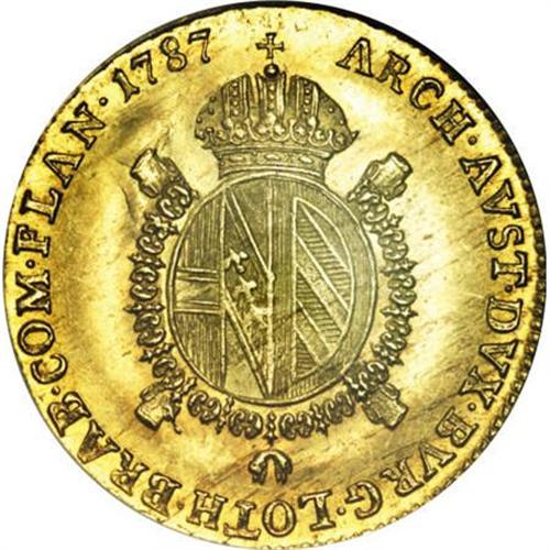 <B>Austrian Netherlands gold 1/2 Souverain d/Or 1787F,</B></I> KM63, MS64 NGC. Well struck with full luster and a few light hairlines. A premium example of this early type.<BR><BR><b>Shipping:</b> Coins & Currency (<a target="_blank" href="http://www.heritageauctions.com/common/shipping.php">view shipping information</a>)