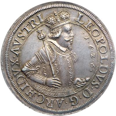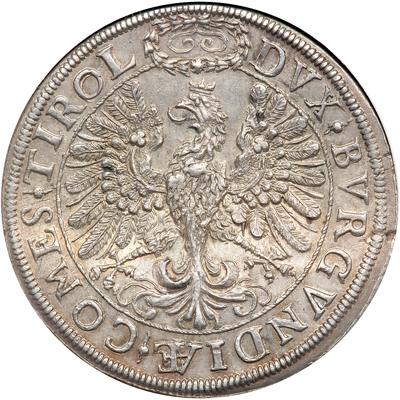 Austria. Double Taler, 1626 (Hall). Dav-3336. Archduke Leopold as Count of Tyrol, 1626-1632. Crowned half figure right with sword and scepter. Reverse: Wreath over eagle. Sharply struck example with original luster and attractive toning. NGC graded AU-55.