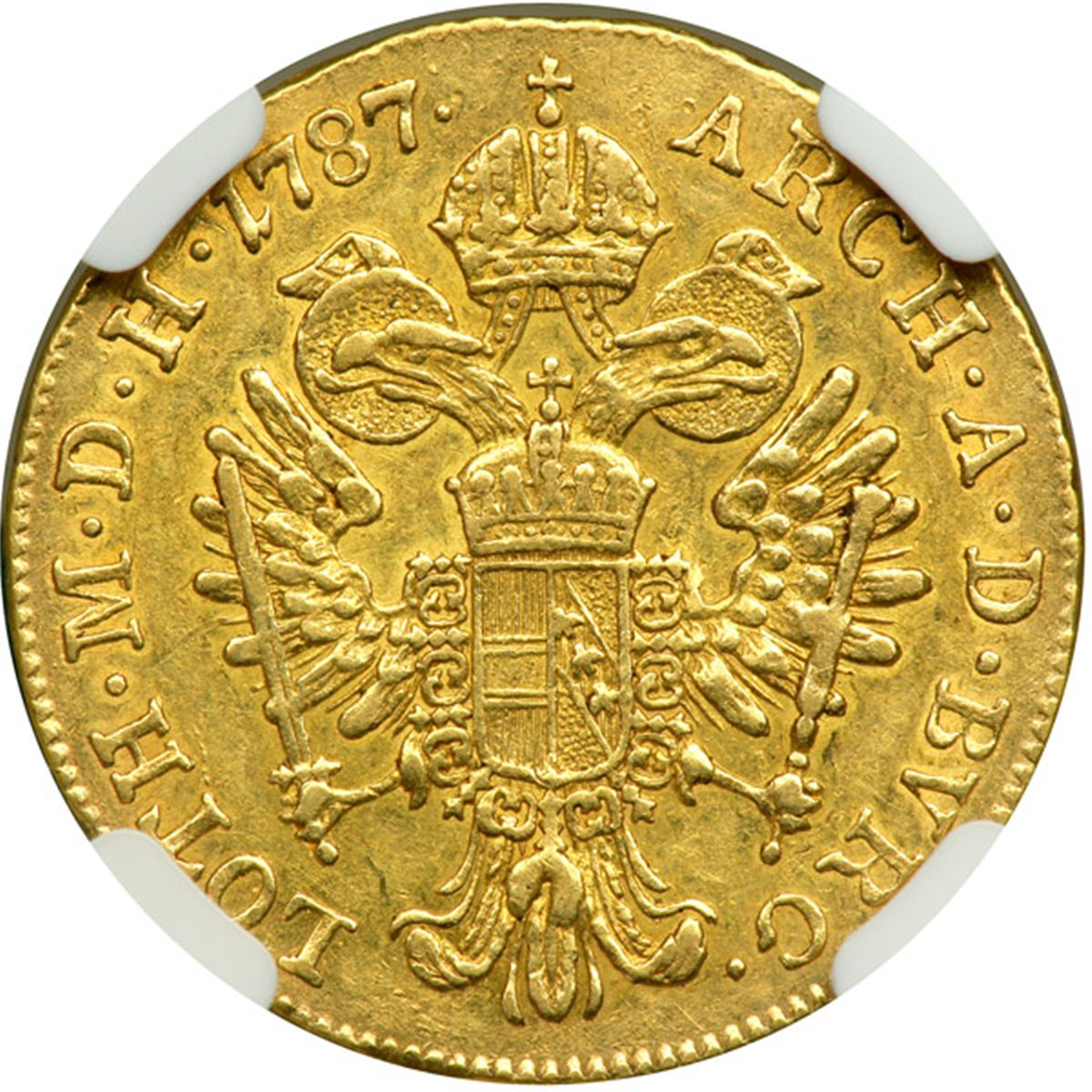 Austria. Ducat, 1787-A. Fr-439; KM-1873. Joseph II, 1765-1790. Laureate head right. Reverse: Crowned double eagle. NGC graded Extremely Fine, Details (Mount Removed).