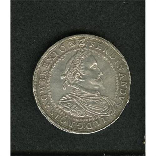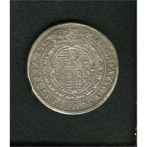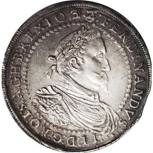<B>Ferdinand II 2 Taler 1632/26 Graz,</B></I> Davenport 3107, KM607, VF-XF, vague mount trace on the top rim and a tiny natural flan clip at 3 o'clock. Despite having been mounted the surfaces are quite nice and the overall appearance of the coin is attractive. The overdate is extremely bold.<BR><BR><b>Shipping:</b> Coins & Currency (<a target="_blank" href="http://www.heritageauctions.com/common/shipping.php">view shipping information</a>)