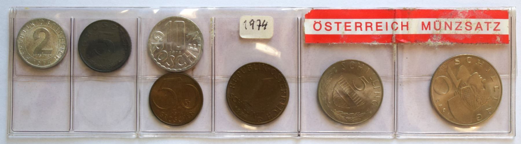 Austria, Mint Year Set 1974 as Issued Unopen from 2 Groschen to 10 Schilling (7)