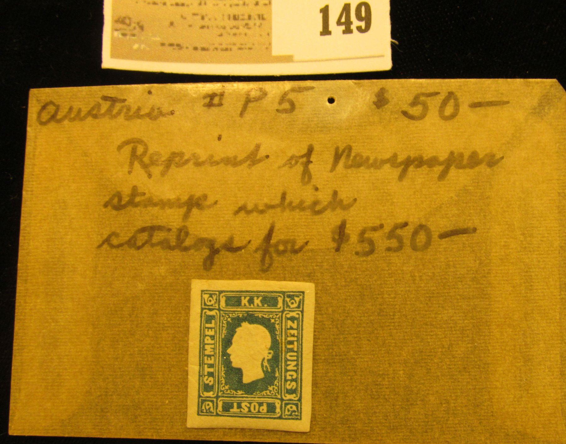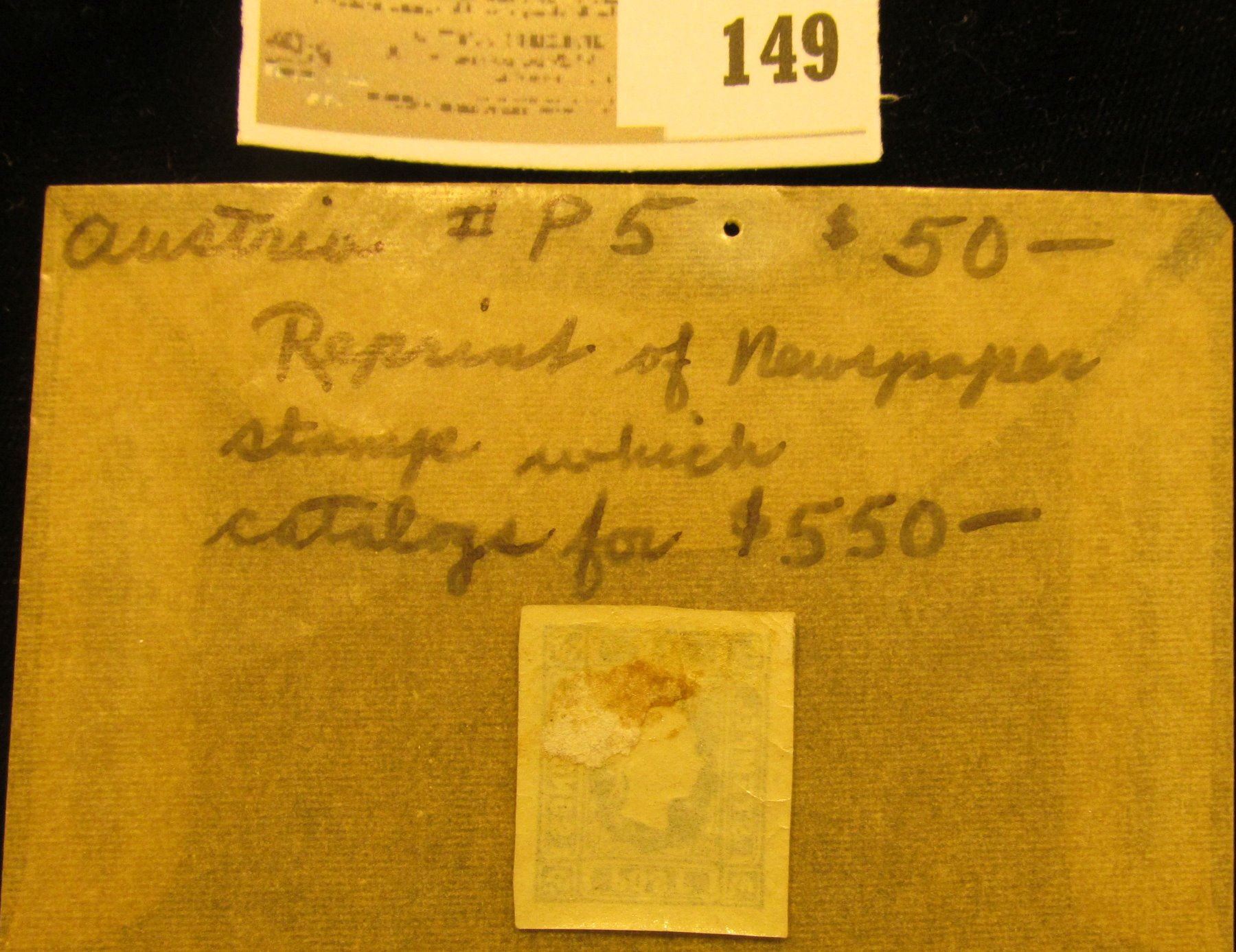 Austria # P5 Reprint of Newspaper Stamp which catalogs for $550.00