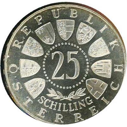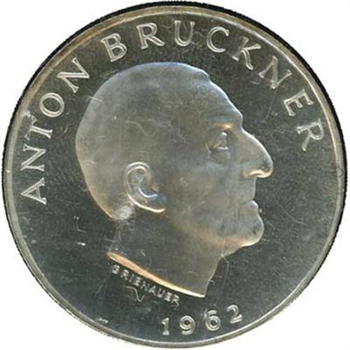 25 Schillings of 1962. Portrait of Anton Bruckner. Choice proof. Mintage of 3,000 pieces.
