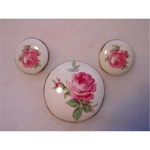 <tr><td>Title: Austria Transferware Demi-Parure Porcelain Brooch</td></tr>