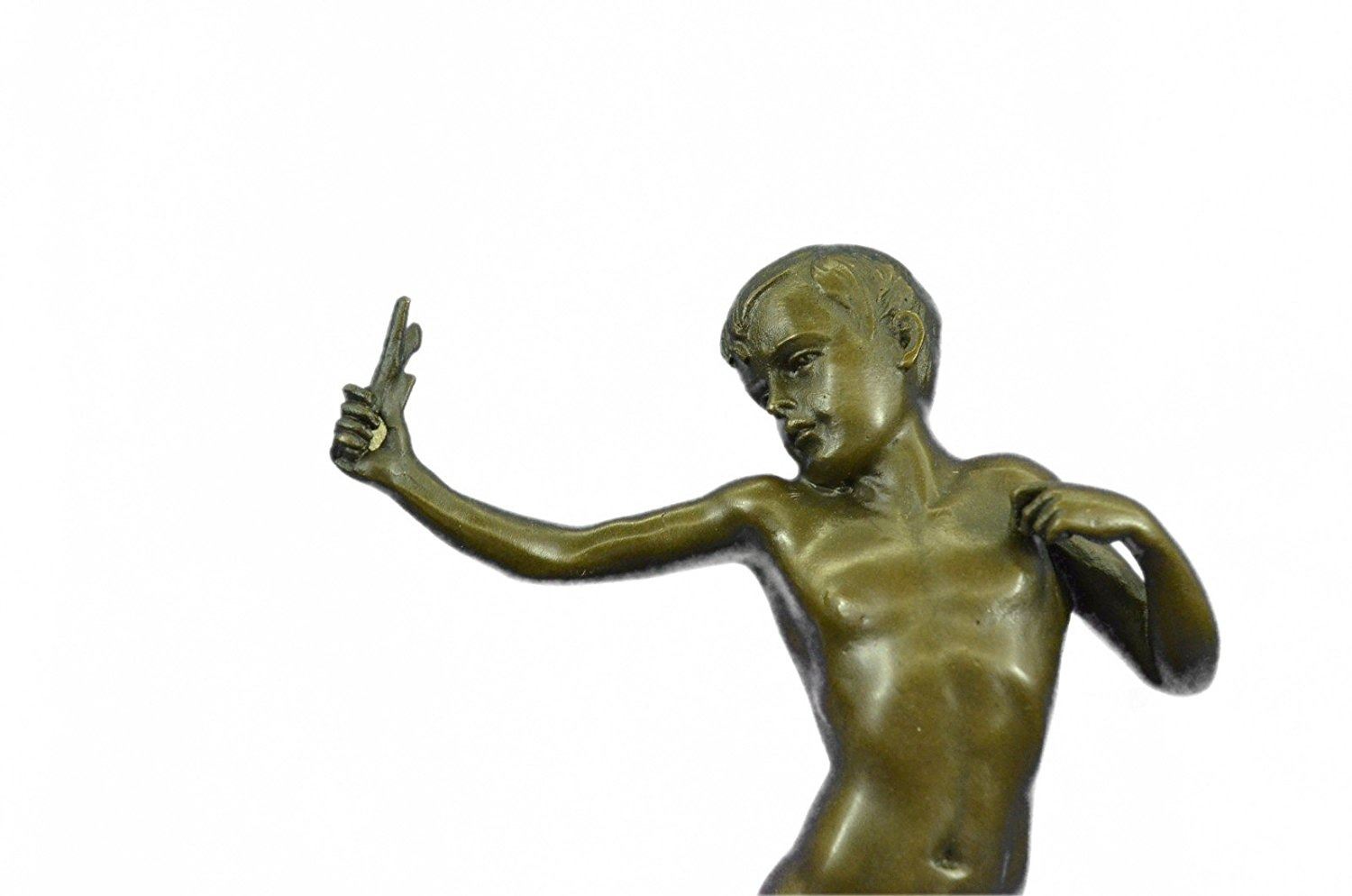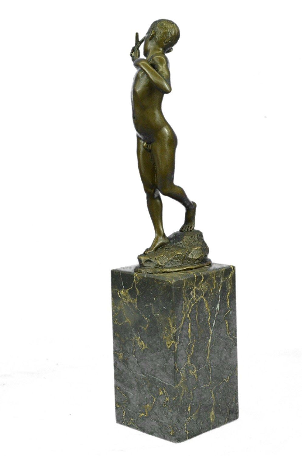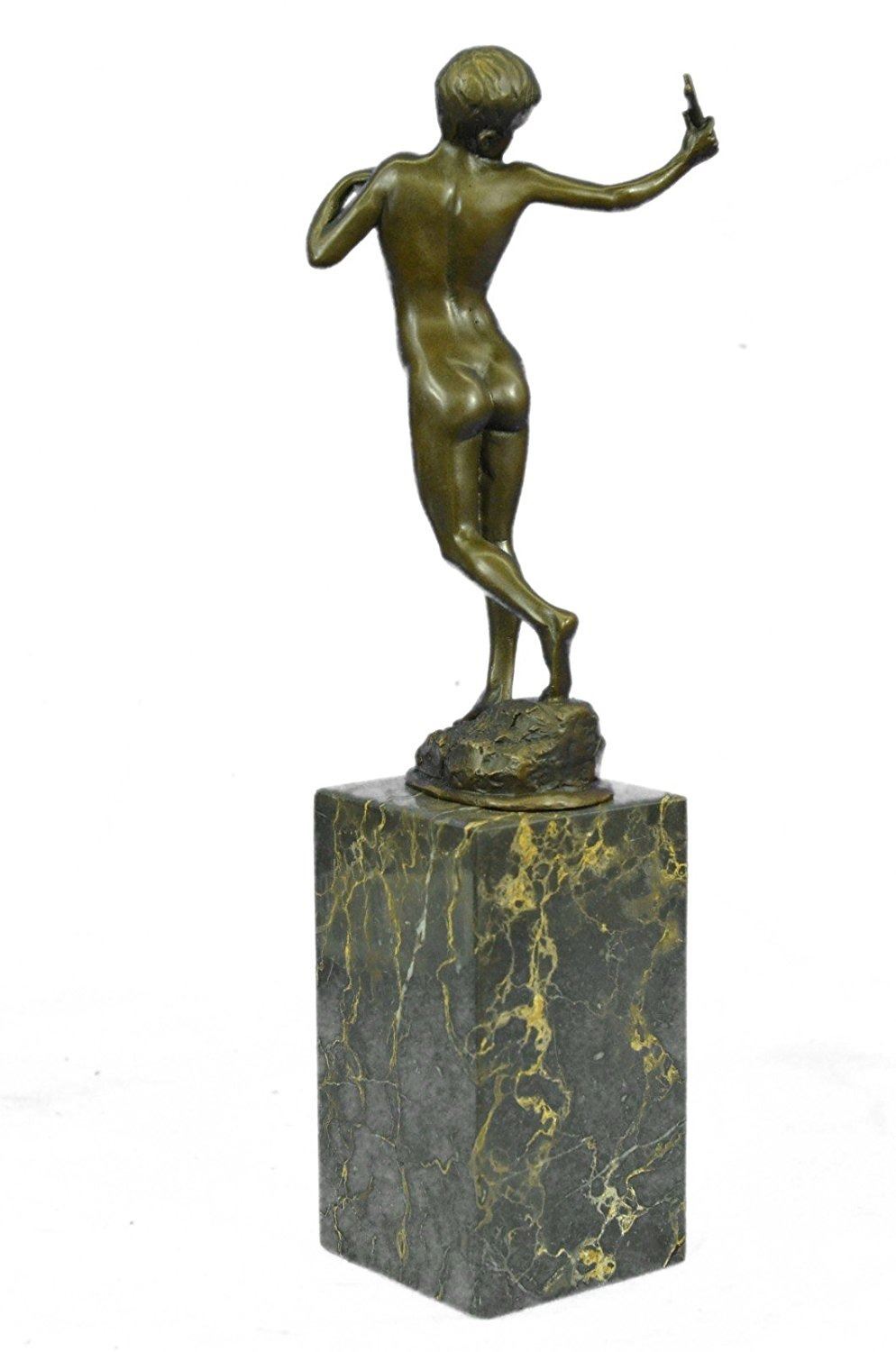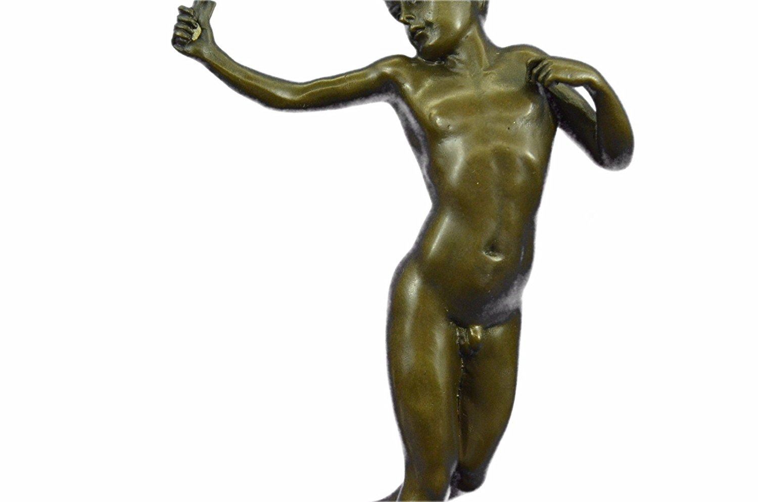He is an artist's muse. He shows off his masculine, muscular body. He crouches low and stretches his arms out before him. He claps his hands tightly and bows his head in a tucked position. The detail of this sculpture is in the lines of his body. He is a symbol or strength and tranquility. 100% bronze and handmade, this brown patina sculpture was cast using the Lost Wax Method and mounted on a marble base. Bronze Dimensions with Marble Base: Height 13 X Width 5 inches. Weight: 8 LBS. Inventory: 71-B7182317