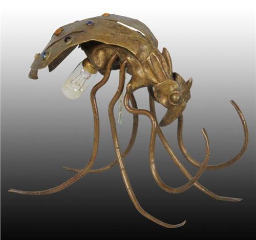 Description Rare. Inset faceted jewels in wings of primitive looking insect. Needs re-wired. Decorative Lamp Condition (Excellent). Size 6" T.