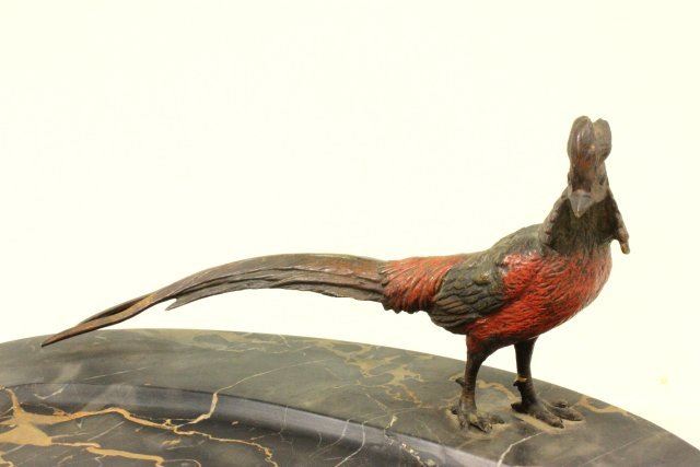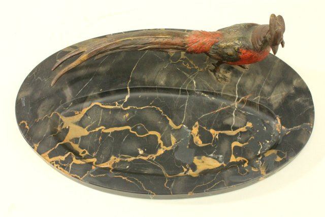 Mounted on marble base. Approx. 5 1/2" H x 13" W. Old repairs on marble.