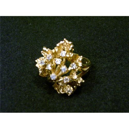 This is a beautiful artistic styled Austrian Crystal Ring. It has lovely carved leaves with Austrian Crystal Insets. The ring is sterling silver with gold overlay. The artists mark is inside the ring. This piece is 1 1/2 inches high and 1 inch wide and also across. This is a very unique find. The quality is exceptional. Ring size is 8.