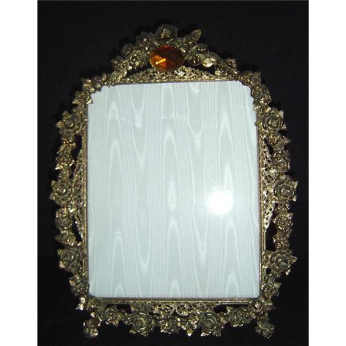 Antique Austrian Large Frame with Bohemian Glass Stone. Circa. 1910. New moire easel. Back in gold. This is not a reproduction. In excellent condition.