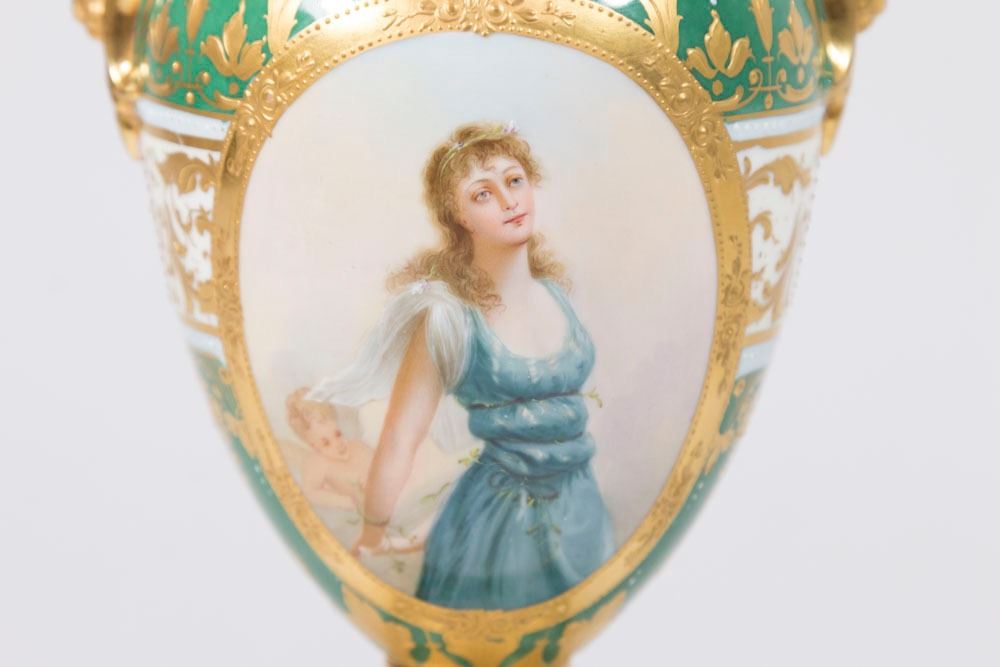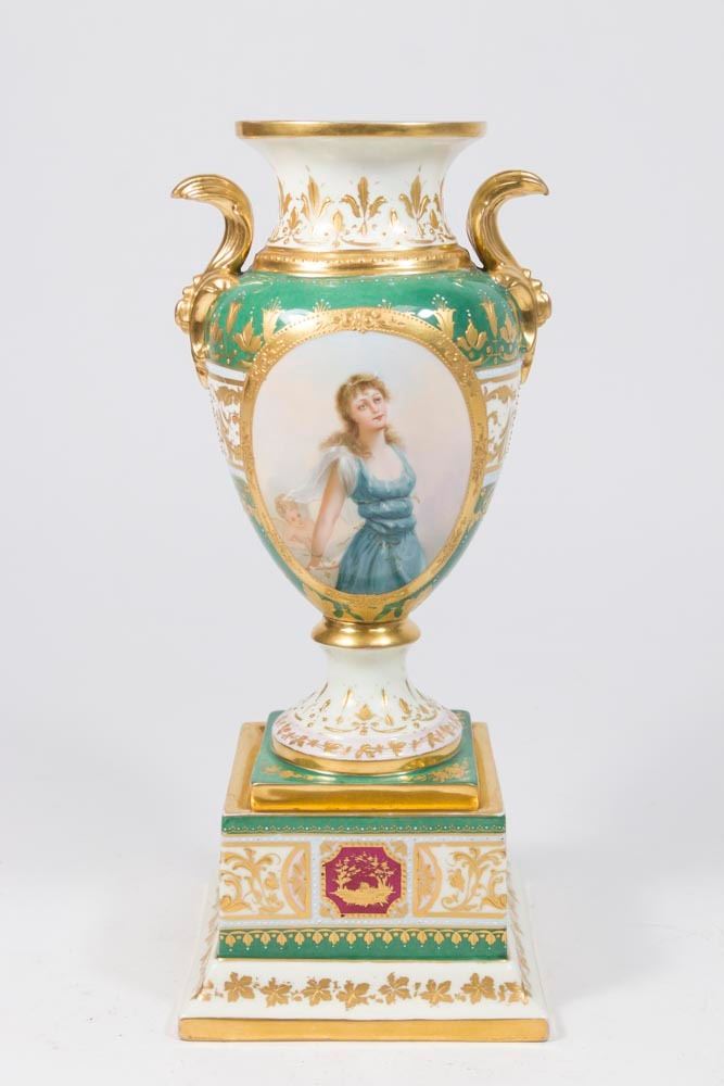 Woman with cupid. Beehive mark. Approx. 11" H.