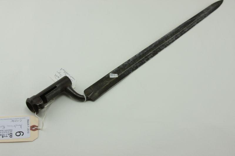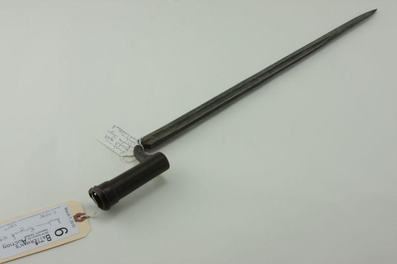An Austrian Model 1849 Agustin Jager carbine sword socket bayonet. Overall length, 28 1/2", miscellaneous marks as pictured.